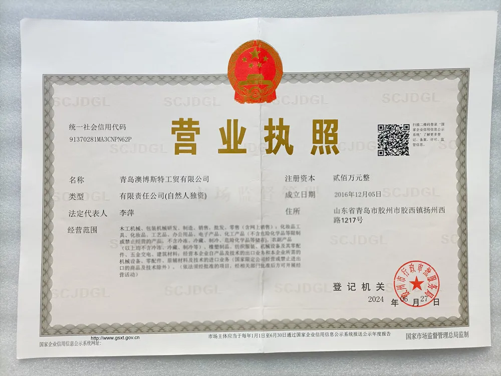 Registered address : No. 1217, Yangzhou West Road, Jiaoxi Town, Jiaozhou City Qingdao Shandong China
